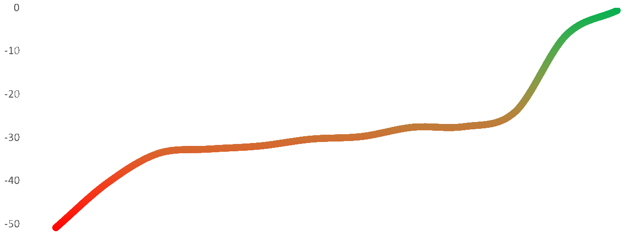 Meditasjon er et interessant fenomen. Ordet meditasjon har ikke samme mening for alle og innebærer alt fra basking med fortiden, bekymring, glede, forståelse, stress og restitusjon. Slik er dataene også. Stolpene viser meditasjon av ulike brukere i ulike grupper. De grønne stolpene viser meditasjon med restitusjon, de røde viser stress. Jo lengre stolpene er jo større er effekten.